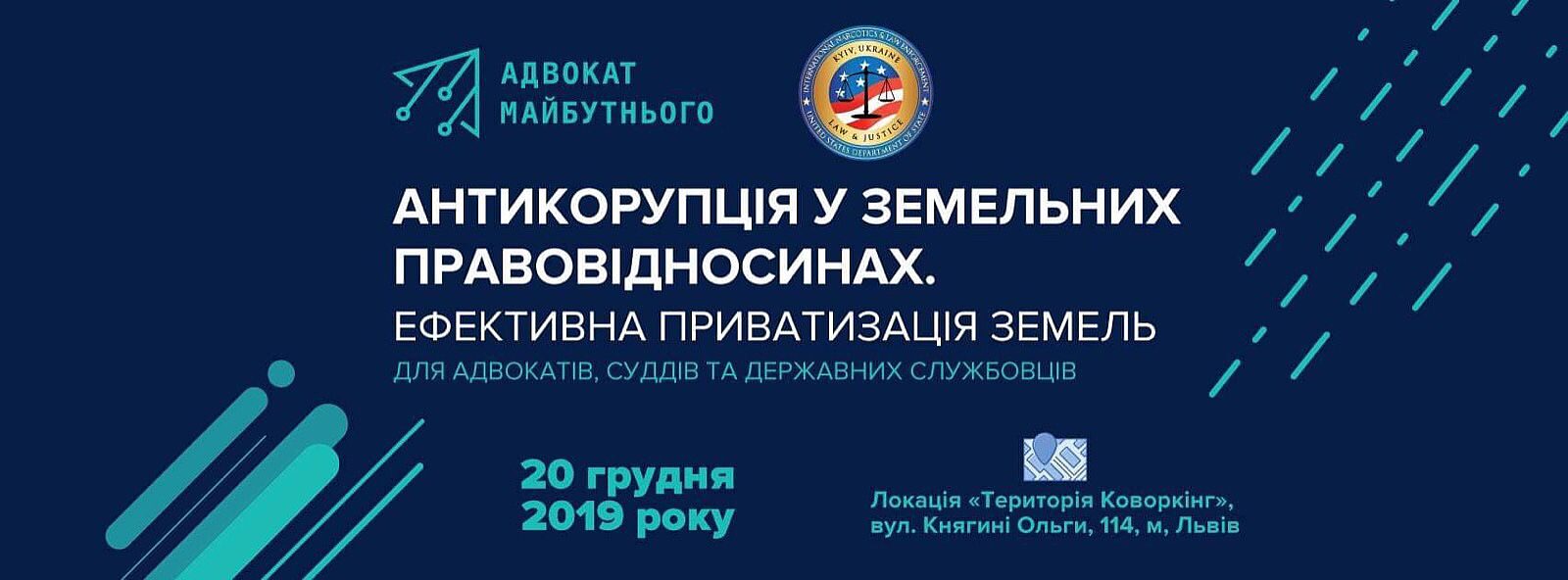20 грудня 2019 року у м. Львів відбудеться тренінг на тему «Антикорупція у земельних правовідносинах» для адвокатів майбутнього, а також суддів, помічників адвокатів, прокурорів та державних службовців.