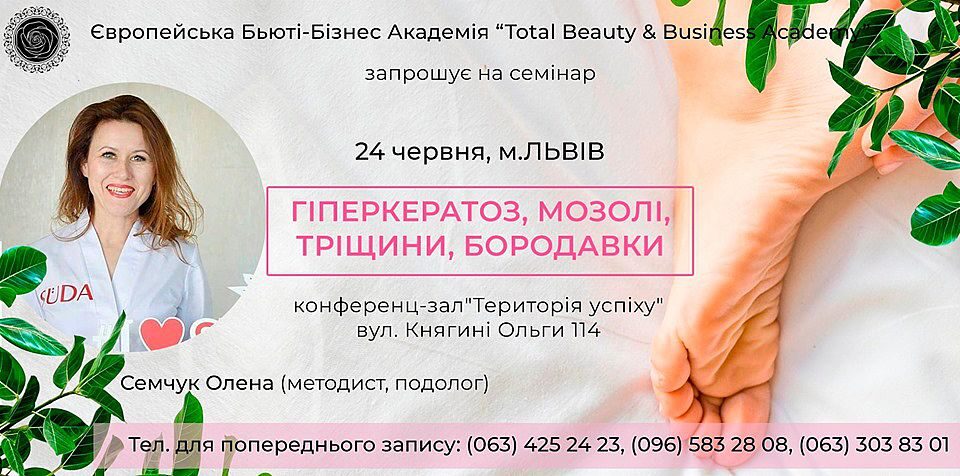 Пройшовши семінар за програмою «Мозолі. Тріщини. Гиперкератоз »ви навчитеся:
